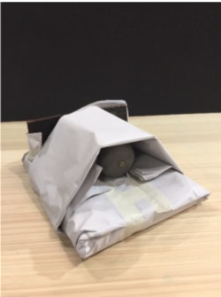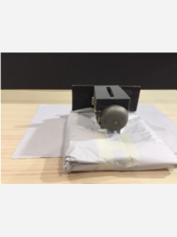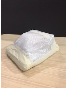 Soft foam forms are cut to protect the front face and rear movements. Slots and spaces are cut within the foam to ensure that no pressure is placed upon any delicate parts. Pulleys are then wrapped and placed beneath the movement shelf. The movement is then fully wrapped in acid free tissue and soft bubble wrap. Masking tape is used to seal the wrapping in place to prevent force being required to unwrap.