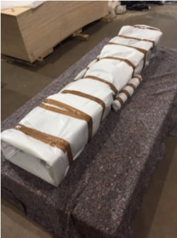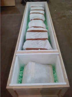 With all parts of the long case clock wrapped it is ready to pack into the crate.