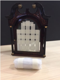 Low adhesive masking tape is applied to the glass of the hood to offer further protection whilst in transit. The hood is then replaced to the body of the clock for final wrapping.