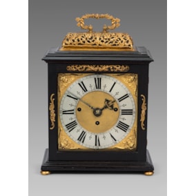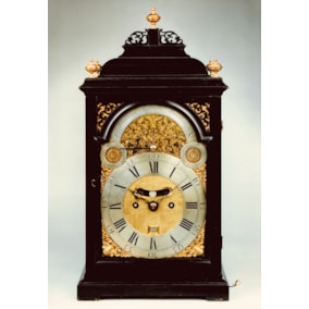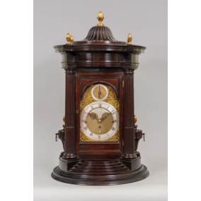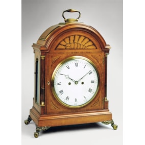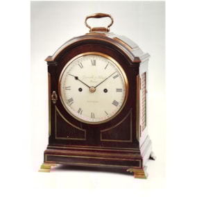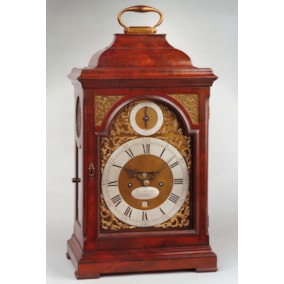 A good Regency period mahogany hour striking bracket clock. The lancet style case with pierced brass side frets, lion and ring side handles and claw feet.